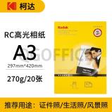 柯达(Kodak) A3 270gRC高光照片纸相片纸 20张/包 ...