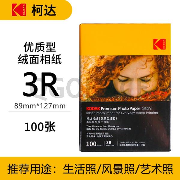 全部产品目录 > 办公用纸 > 相片纸>柯达(Kodak) 3R/5寸 优质型RC绒面 家庭照片打印相纸照片纸 100张/包
