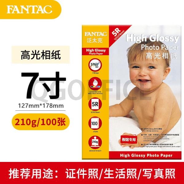 • 商品名称:泛太克 5R7寸210G高光相片纸100张/包