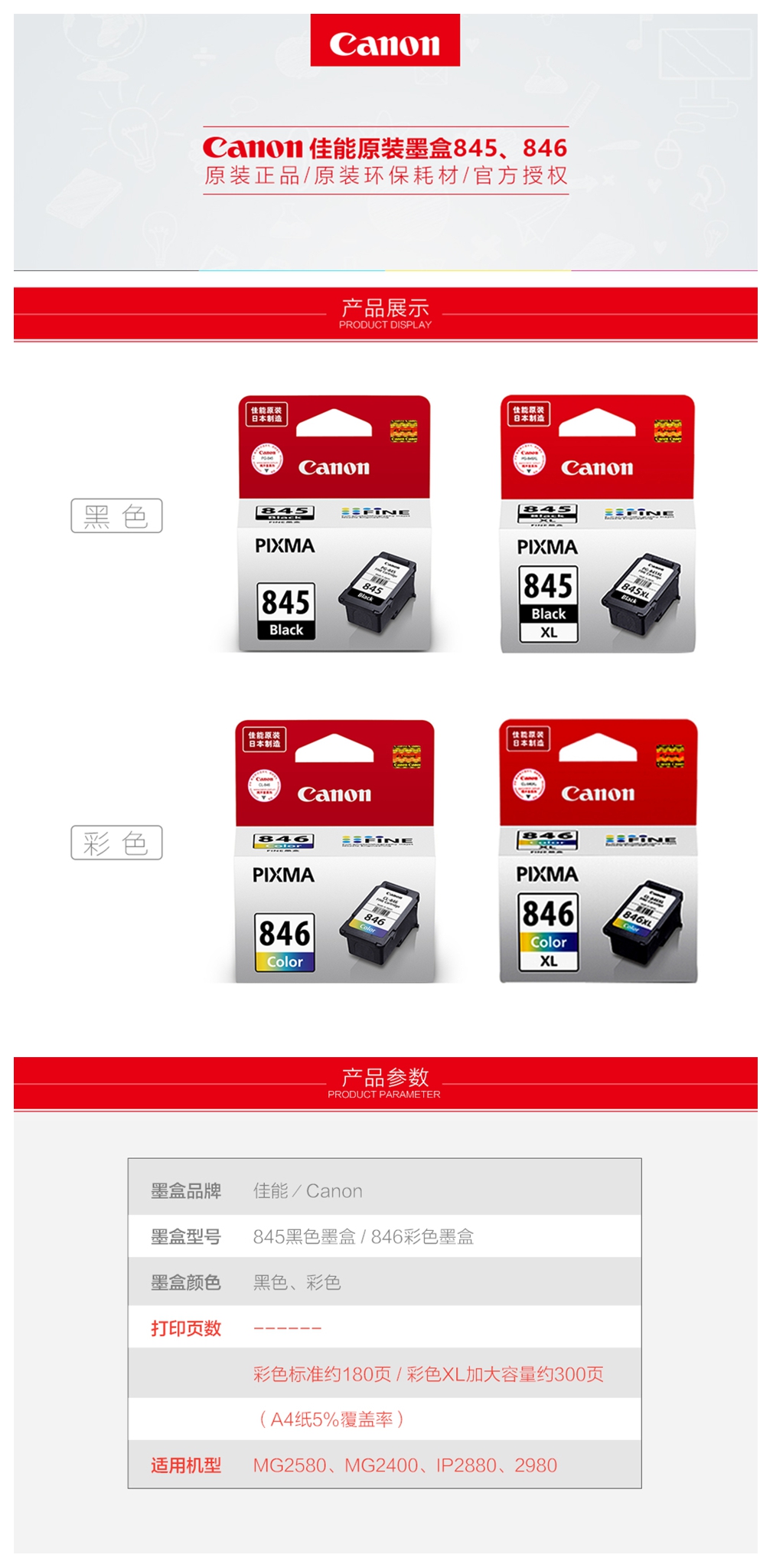 • 商品名称:佳能(Canon) CL-846XL彩色墨盒
