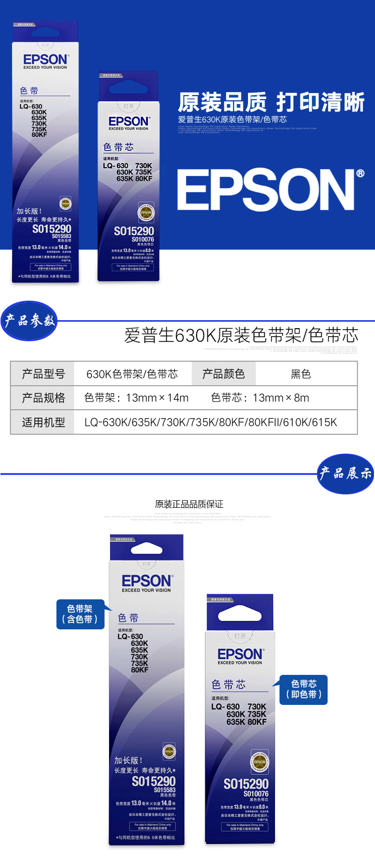 • 商品名称:爱普生(EPSON) SO15290 色带架(含芯)(适用LQ-610k/615k/630K/635k/730K/735k/80KF)