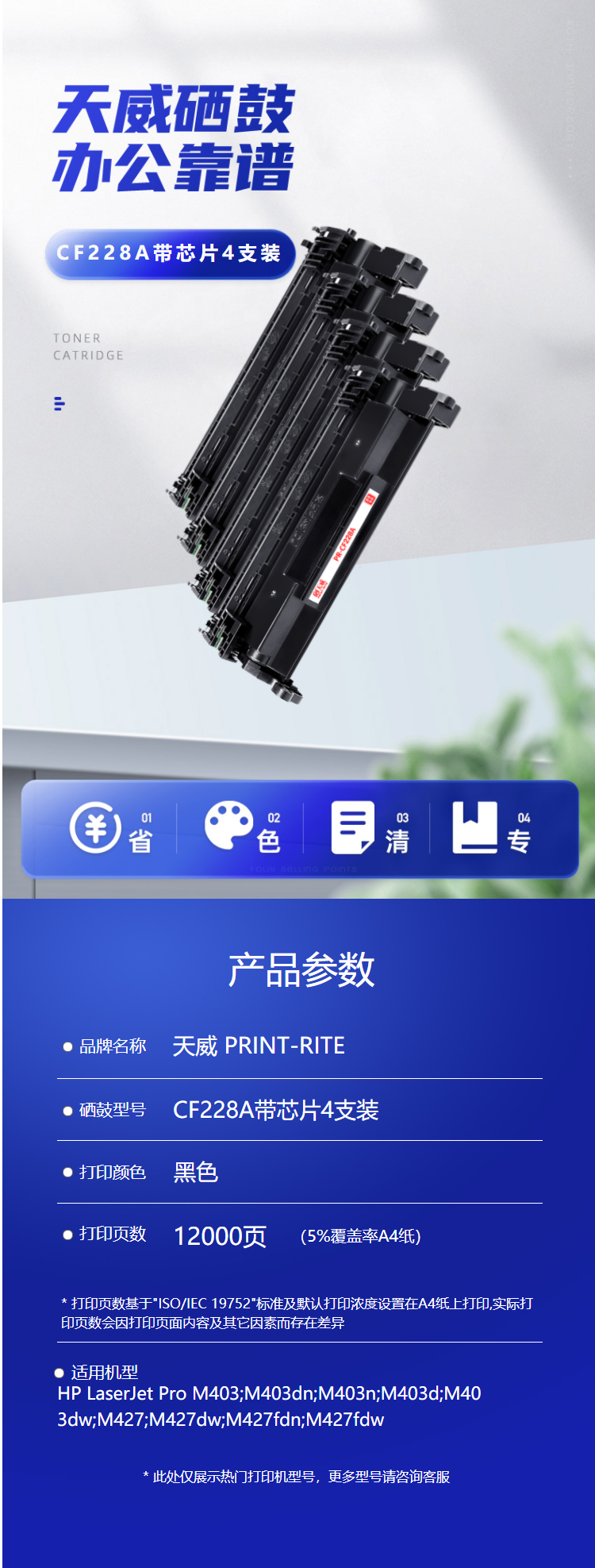 • 商品名称:天威 CF228A硒鼓(蓝包)