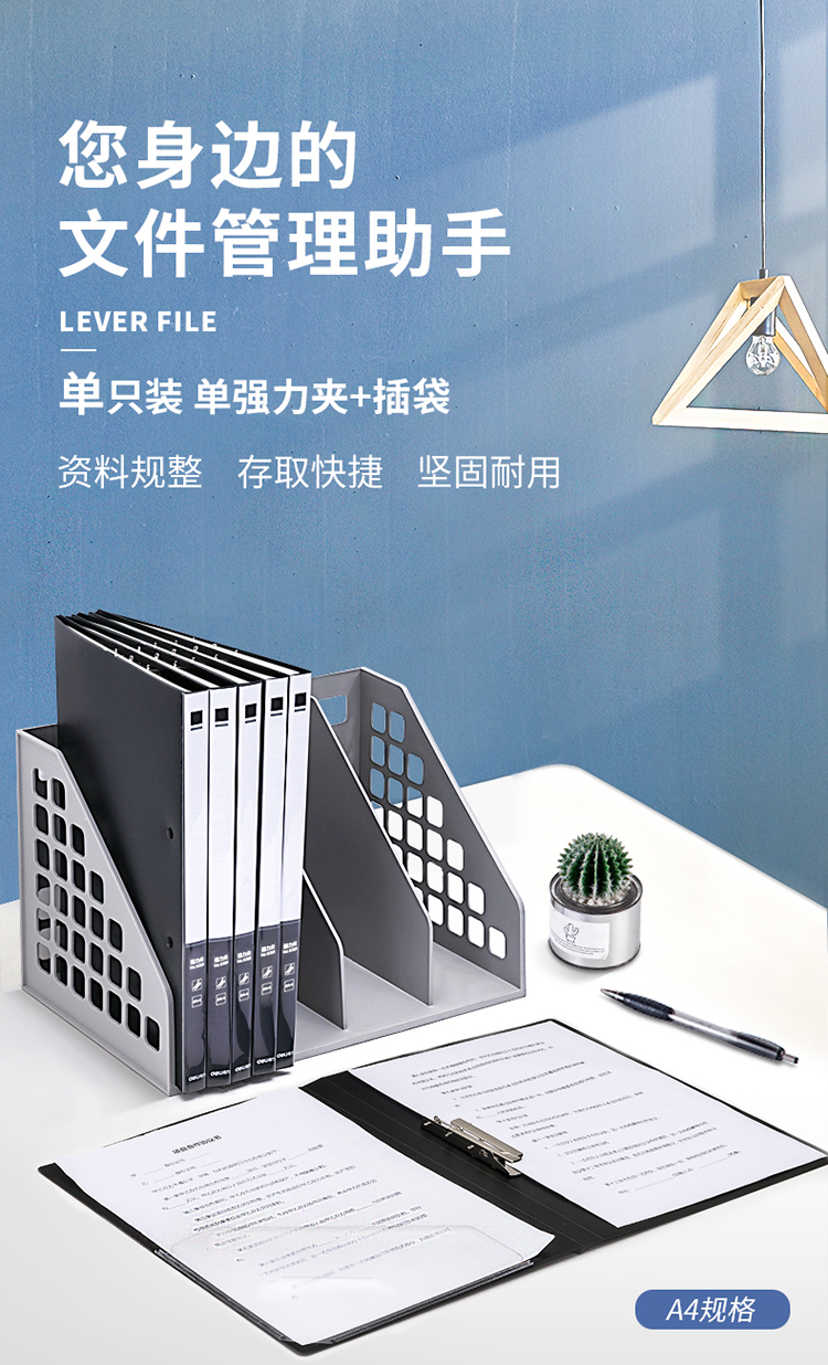 • 商品名称:得力(deli) 5301 实用文件夹A4单强力夹+插袋