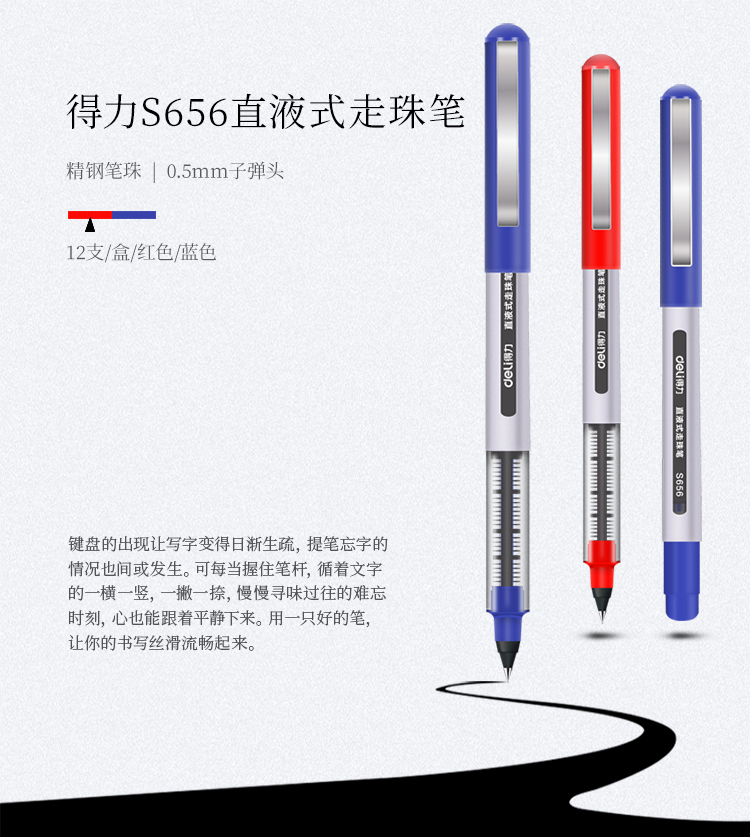 • 商品名称:得力(deli) S656 S656直液式走珠笔签字笔中性笔学生用水性笔碳素笔考试用笔(红色)