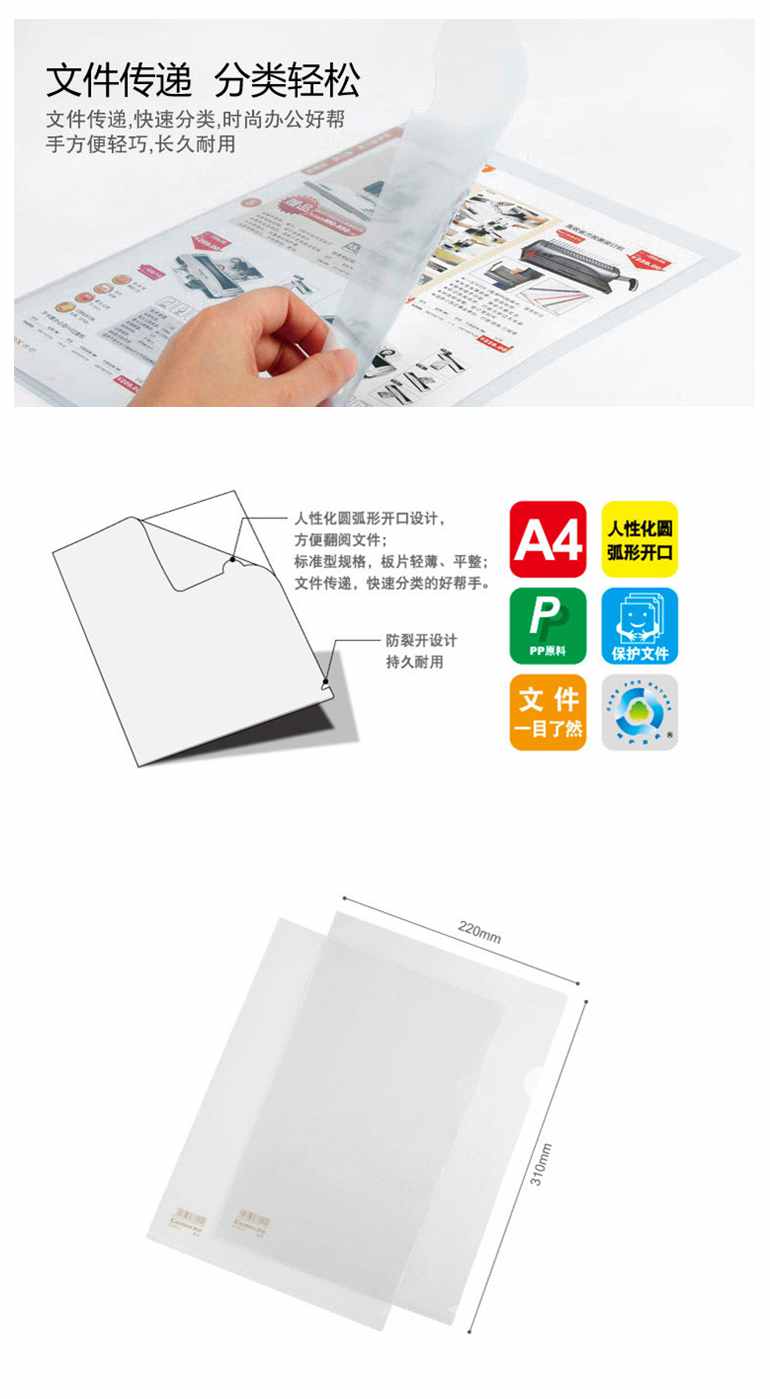 齐心(COMIX) E310-1 A4两页文件套二页透明文件夹单片夹100个/包(透明白) 100个/包 (透明白)。