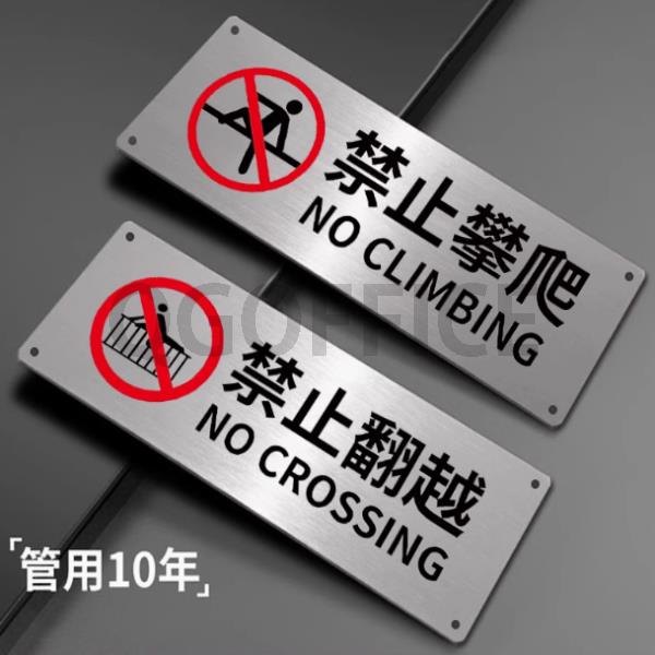 • 商品名称:国产 禁止翻越标识牌不锈钢警示牌 30*15cm