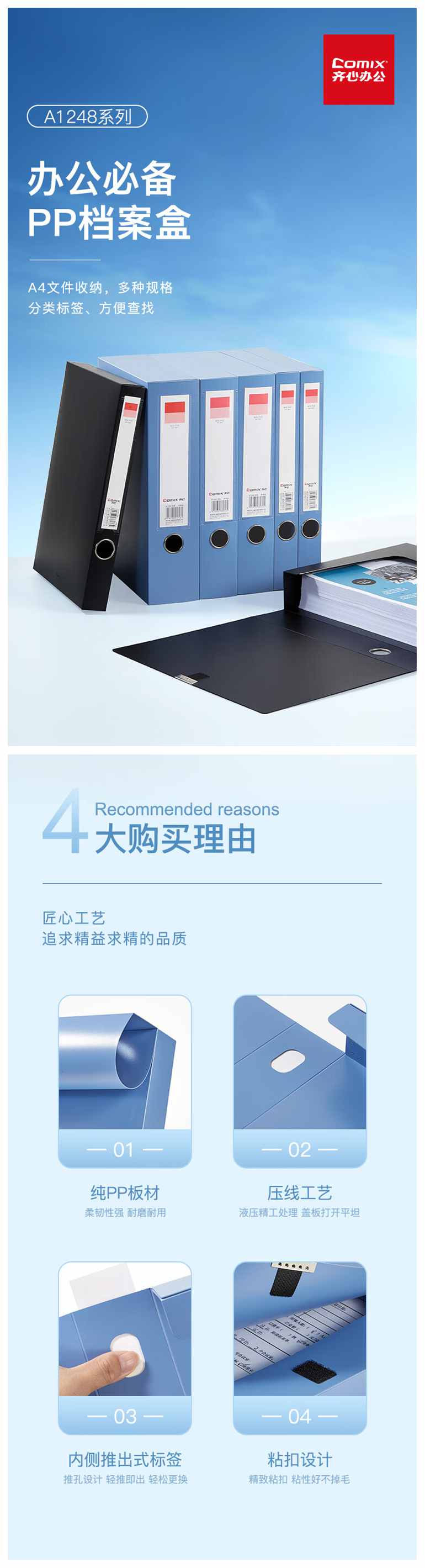 齐心(COMIX) HC-75 加厚型粘扣档案盒/A4文件盒/资料盒75mm(黑色) 12个/箱 (黑色)