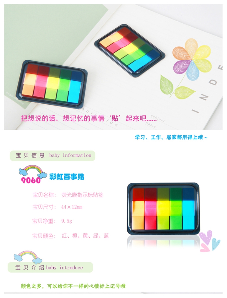 • 商品名称:得力(deli) 9060 荧光指示标签/便利贴/报事贴