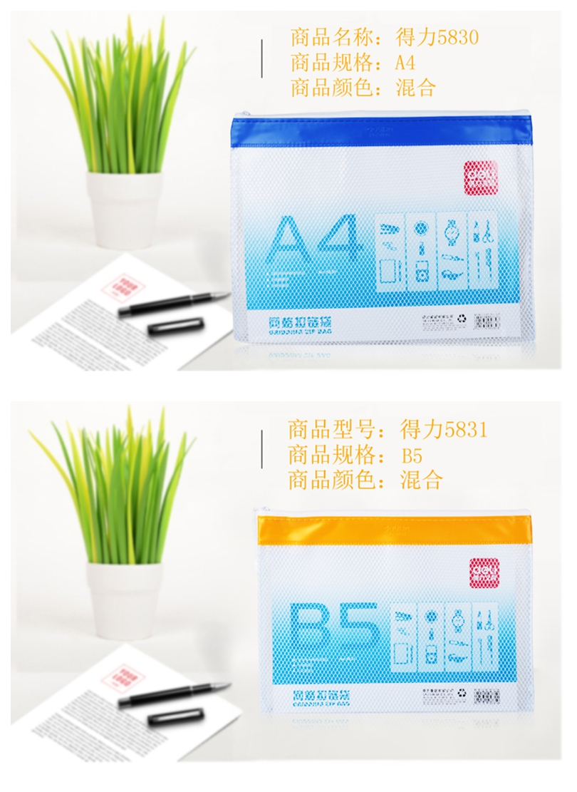 • 商品名称:得力(deli) 5990 A4网纱拉链袋