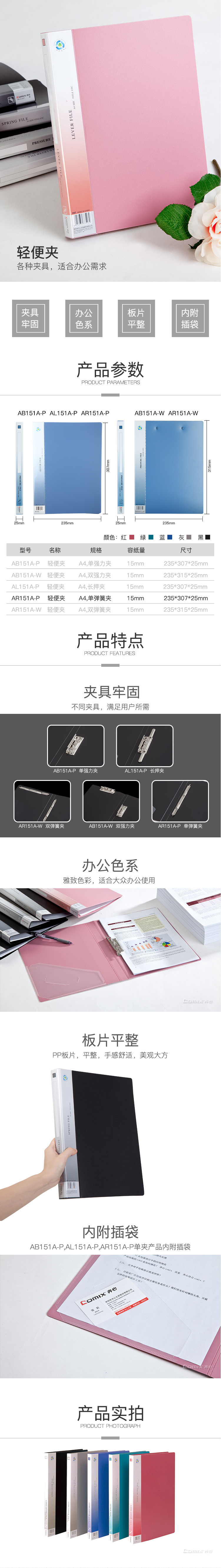 • 商品名称:齐心(COMIX) AR151A-P 文件夹/资料夹/单弹簧夹A4(蓝色)
