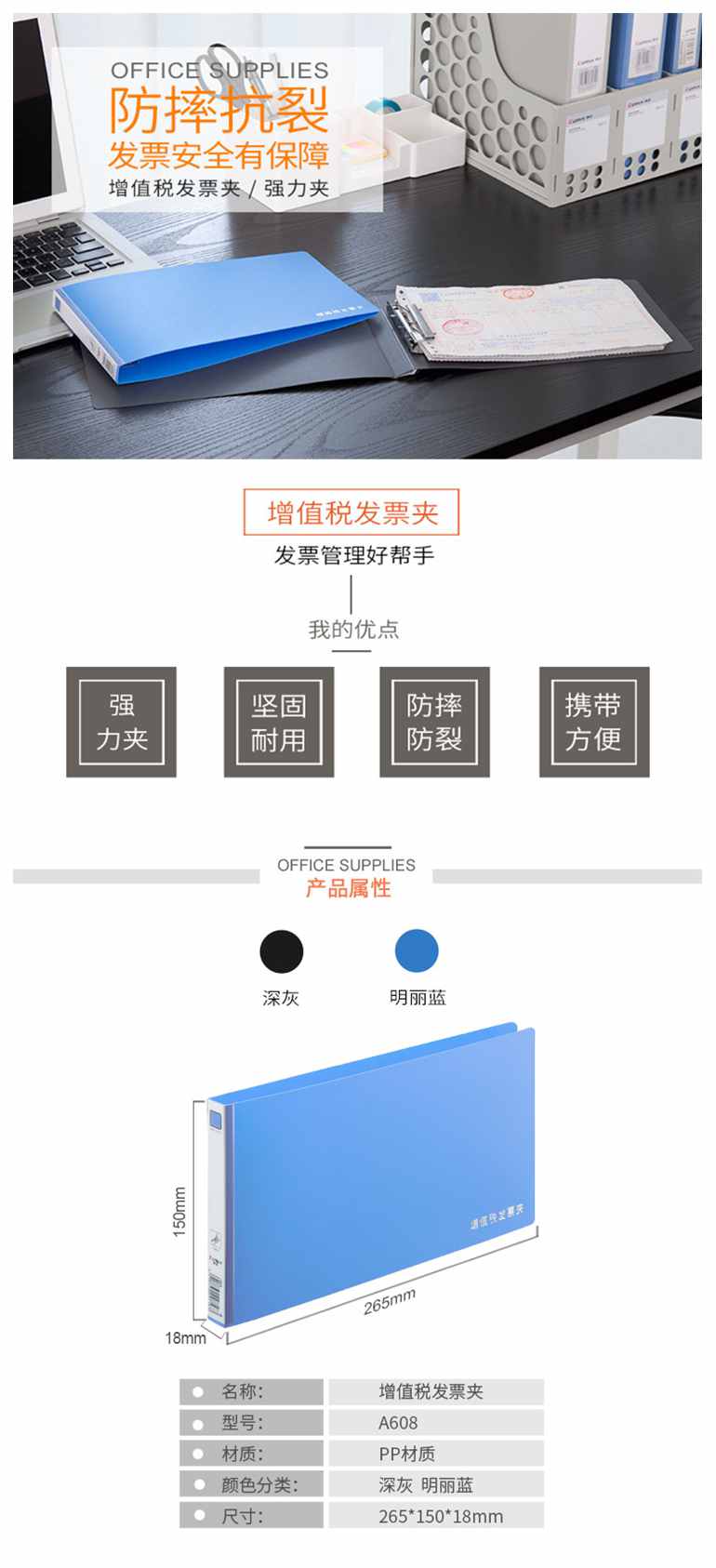 • 商品名称:齐心(COMIX) A608增值税发票夹(蓝)