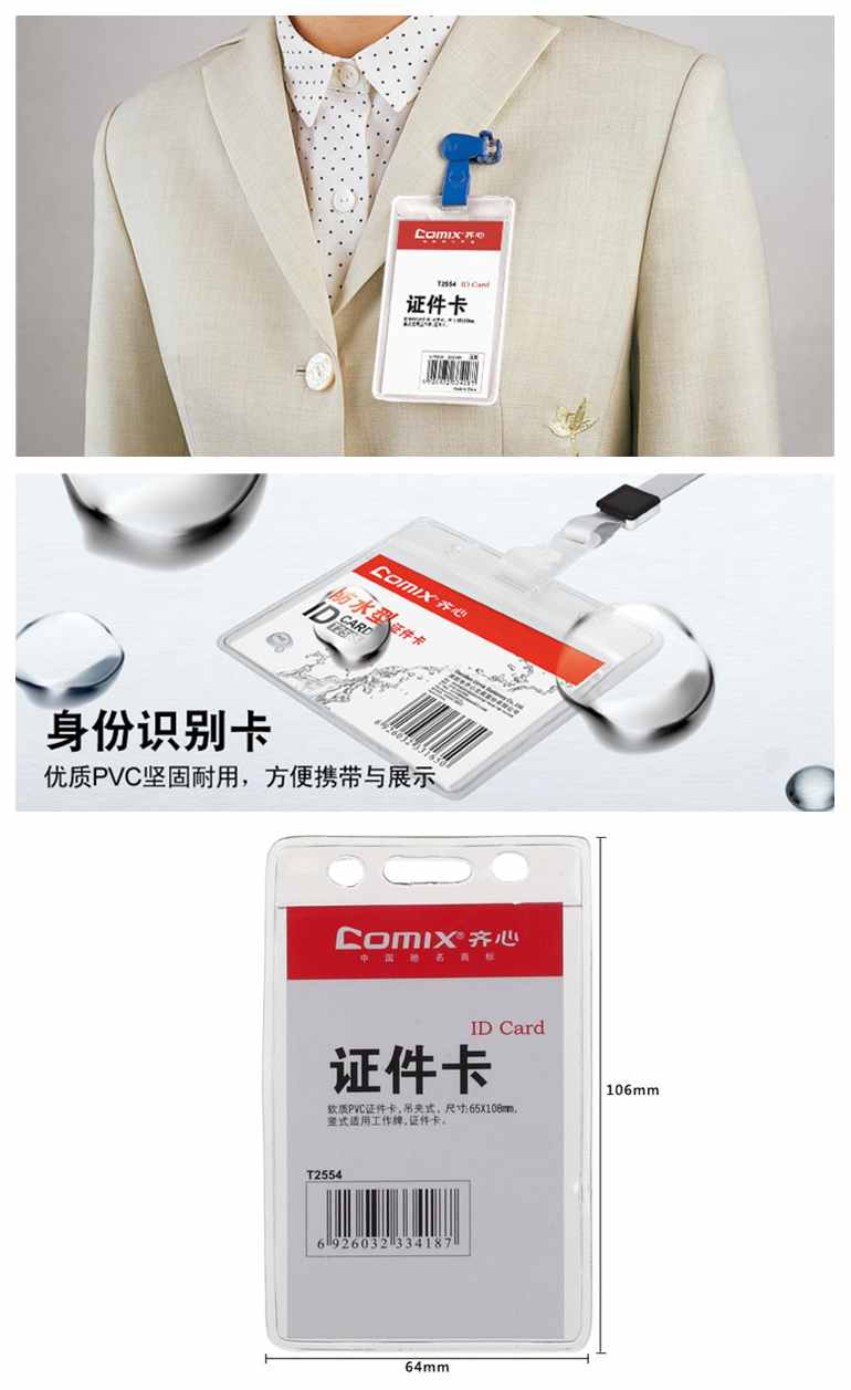 • 商品名称:齐心(COMIX) T2554 身份识别卡套胸卡证件卡套软质PVC透明竖式10个/包