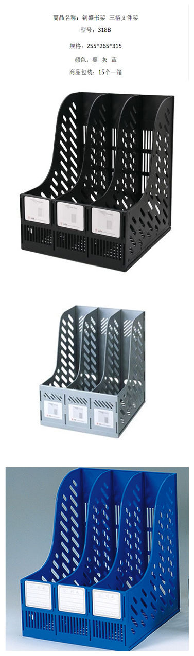 全部产品目录 >办公文具 > 文件整理 > 文件框>钊盛 318B 文件架/三档书架(蓝色)