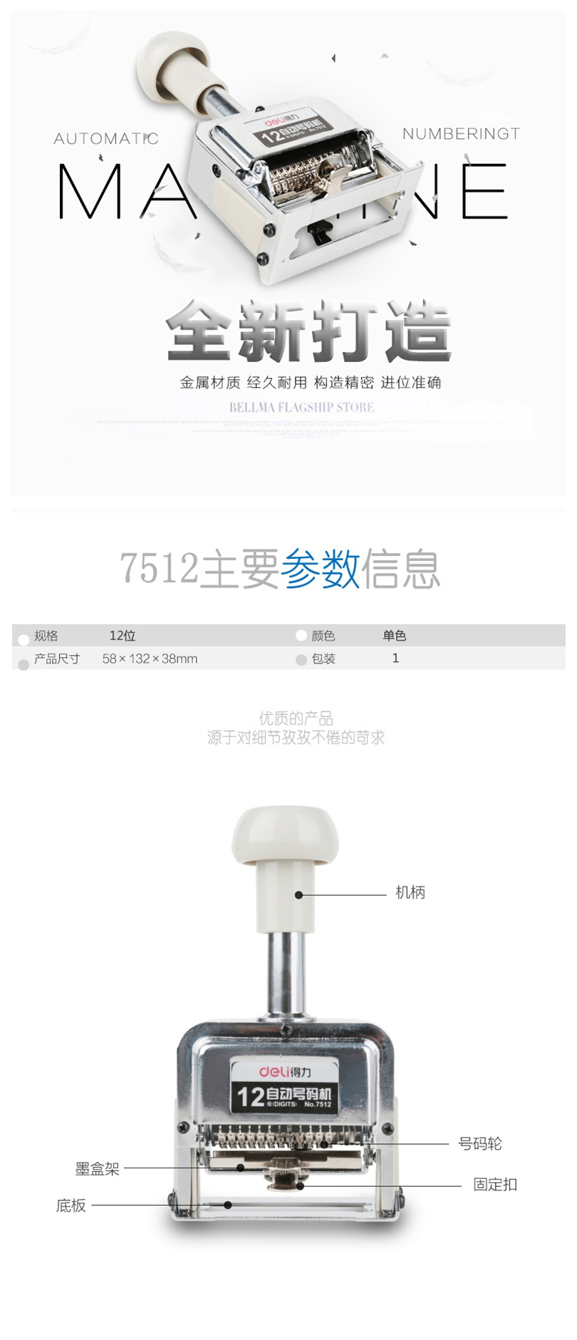 • 商品名称:得力(deli) 7512 十二位自动号码机