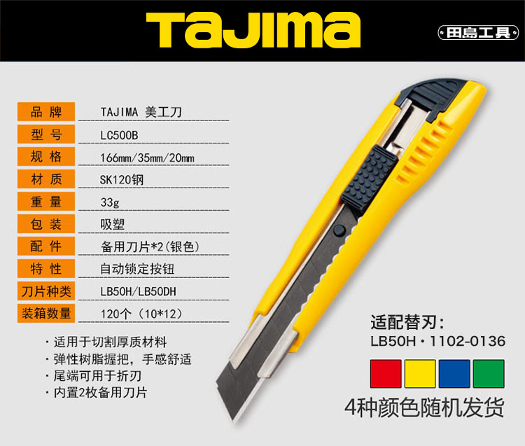 • 商品名称:田岛(TAJIMA) LC500B 大号18mm美工刀(3片刀片)
