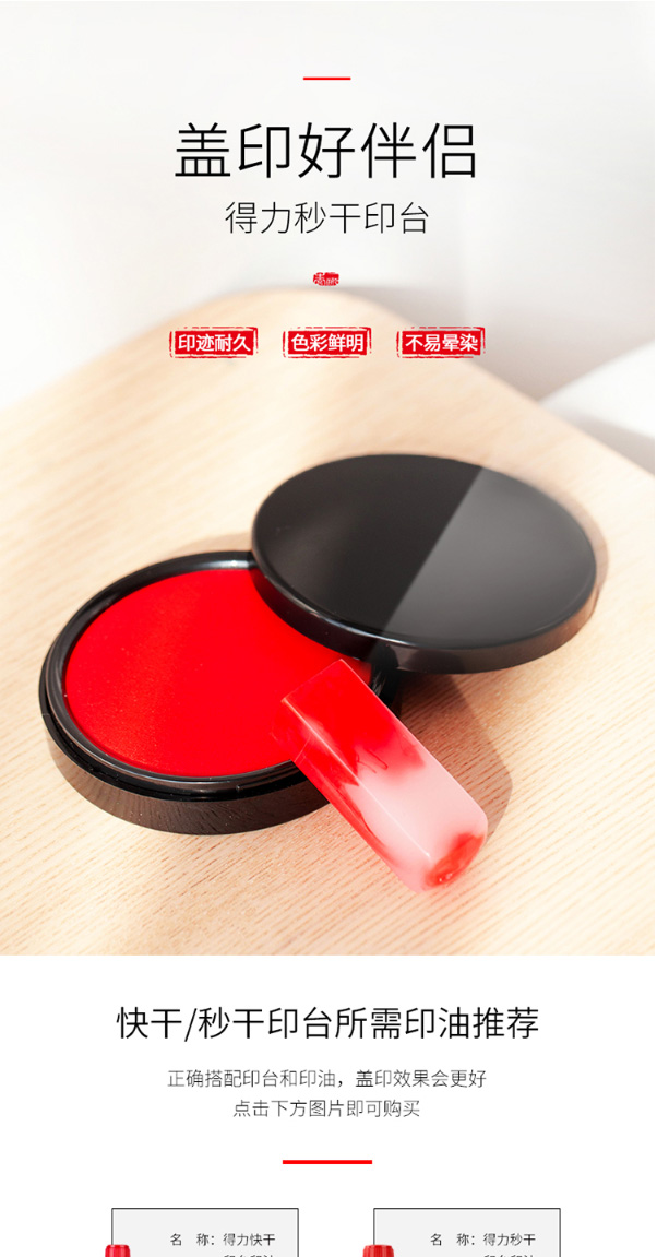 • 商品名称:得力(deli) 9870 φ95mm圆形塑壳快干秒干印台印泥-红色