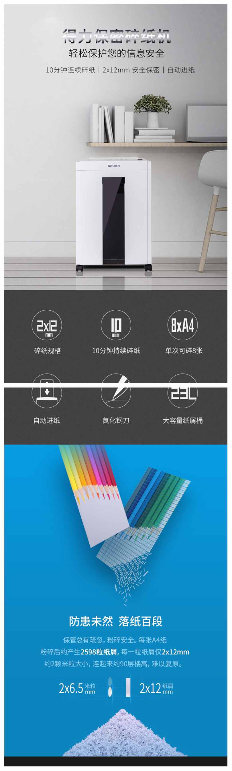 • 商品名称:得力(deli) 27250 碎纸机(白色)
