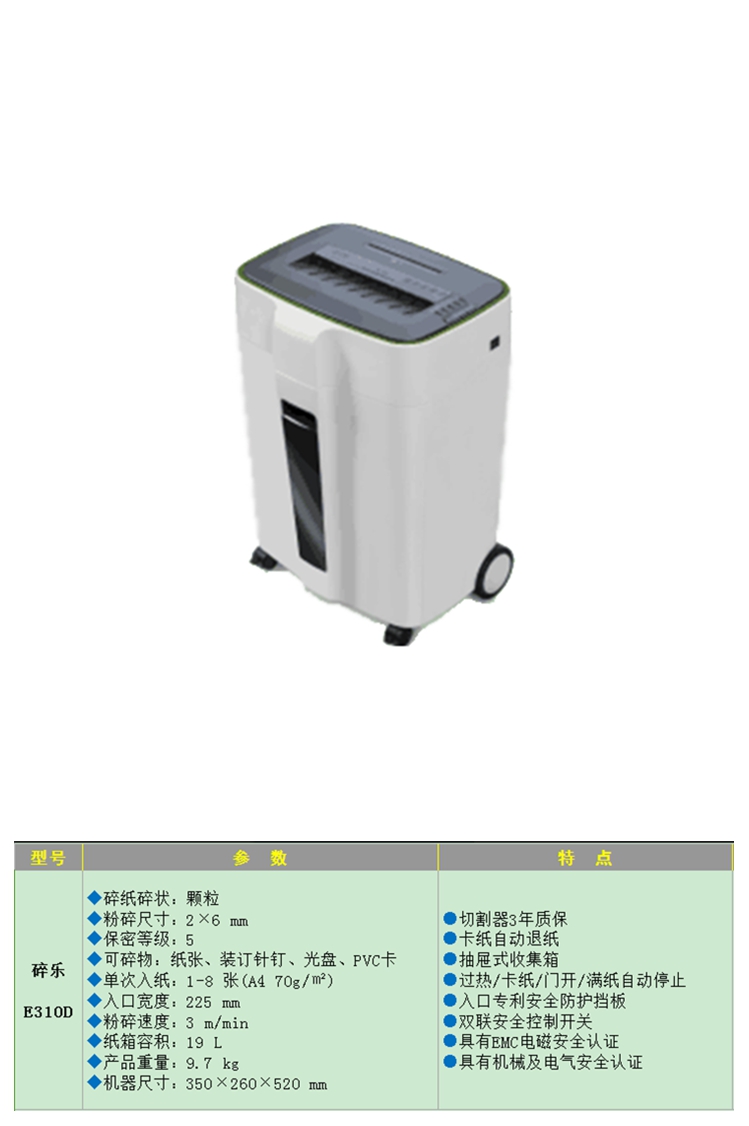 • 商品名称:碎乐(Ceiro) E310D 碎纸机