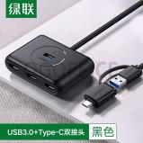 绿联(UGREEN) CR113 USB3.0 高速扩展分线器 4口HUB集线器 一拖四延长线带Type-C OTG头 0.5米 (黑色0.5米)