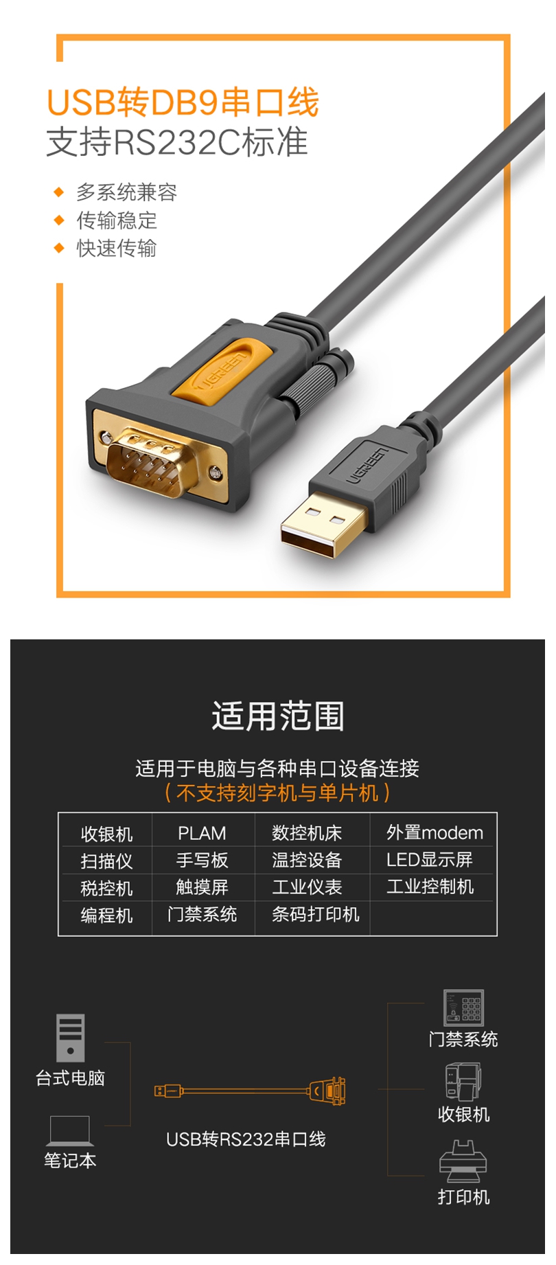 • 商品名称:绿联(UGREEN) CR104 usb转232串口线9针转换器usb转com串口线usb转9针串口线公头电脑笔记本usb转rs232九针串口线usb转串口线(USB转9针串口公头1m)