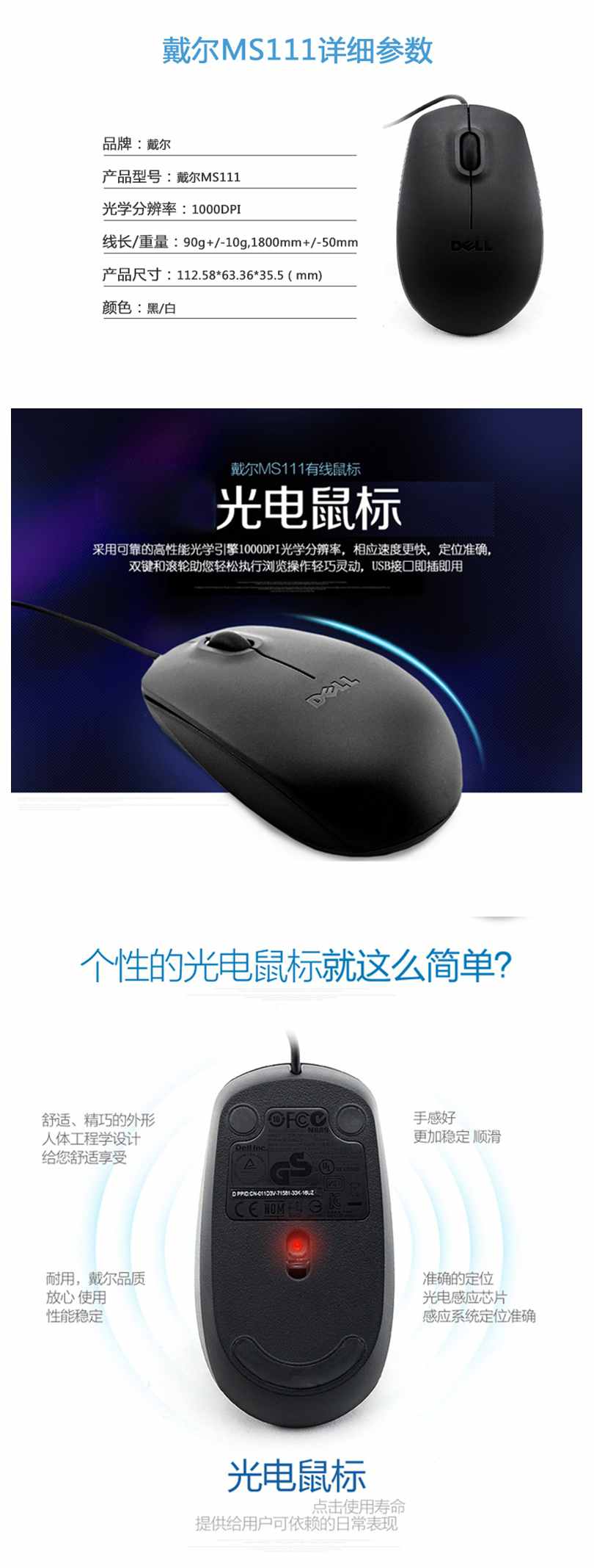 • 商品名称:戴尔(DELL) MS111 有线鼠标黑色