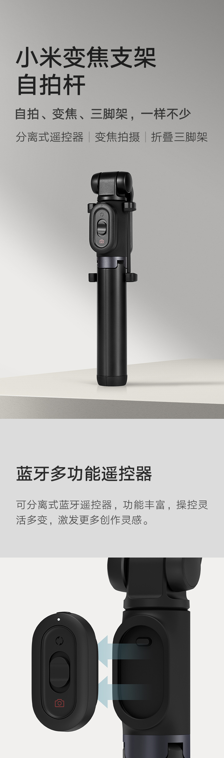 • 商品名称:小米(MI) 变焦支架蓝牙自拍杆 分离式遥控器 自拍杆三脚架二合一 360°旋转 适用于小米/红米/xiaomi/redmi手机