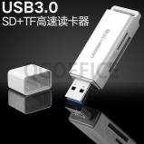 绿联(UGREEN) 读卡器多合一usb3.0高速sd卡tf卡type-c手机电脑两用转换器小型迷你多功能通用佳能单反内存卡相机读卡器 (白色-SD/TF双卡双读*1GB文件10秒传)