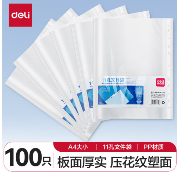 • 商品名称:得力(deli) 5715 11孔资料册文件替芯袋 100只装
