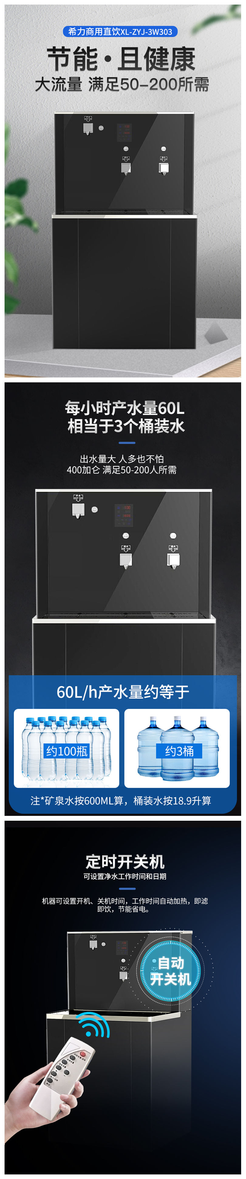 希力 商用净水器、饮水机 RO反渗透+五级过滤+步进式加热 XL-ZYJ-3W303(一开两直饮)