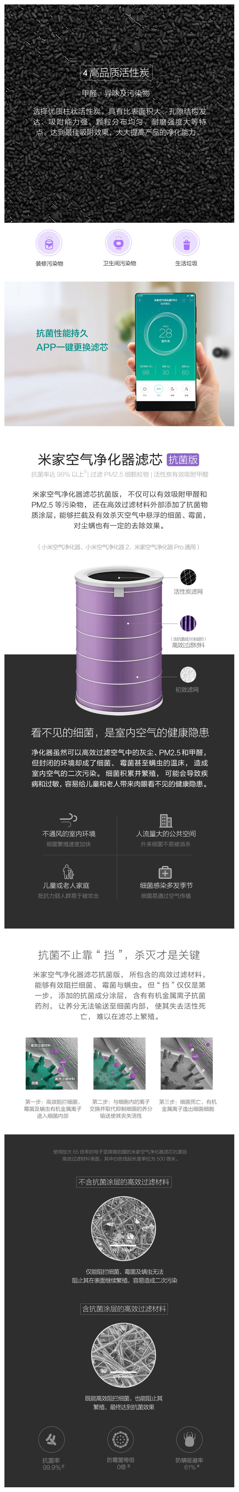 • 商品名称:小米(MI) 空气净化器滤芯 抗菌抗病毒版 紫色