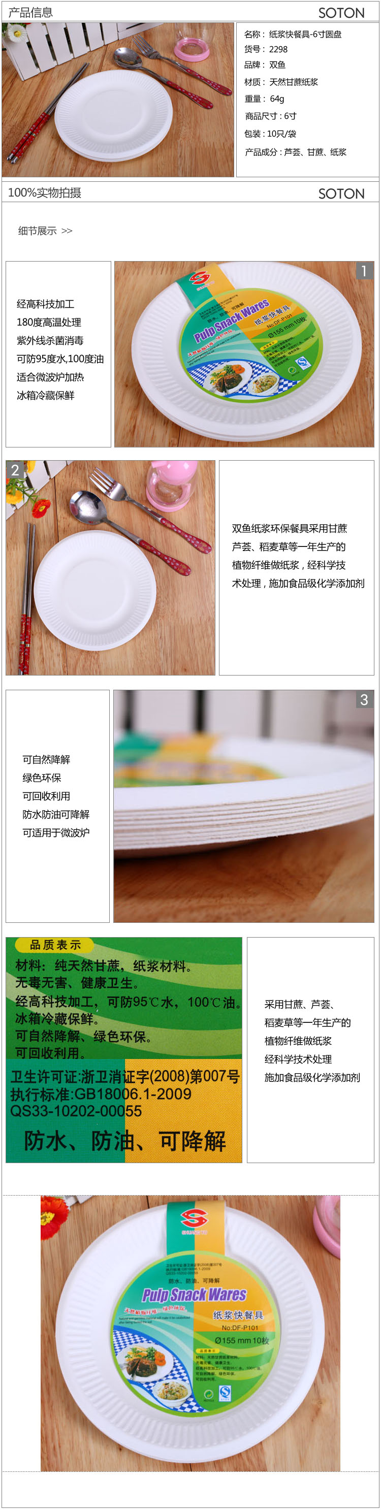• 商品名称:国产 双鱼一次性纸盘6寸环保纸浆圆盘15.5cm