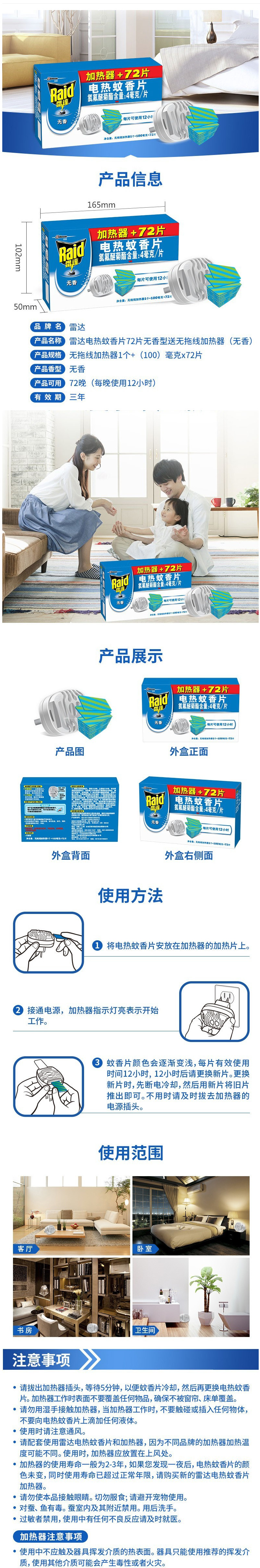 • 商品名称:雷达(Raid) 雷达72片 电热蚊香片+加热器