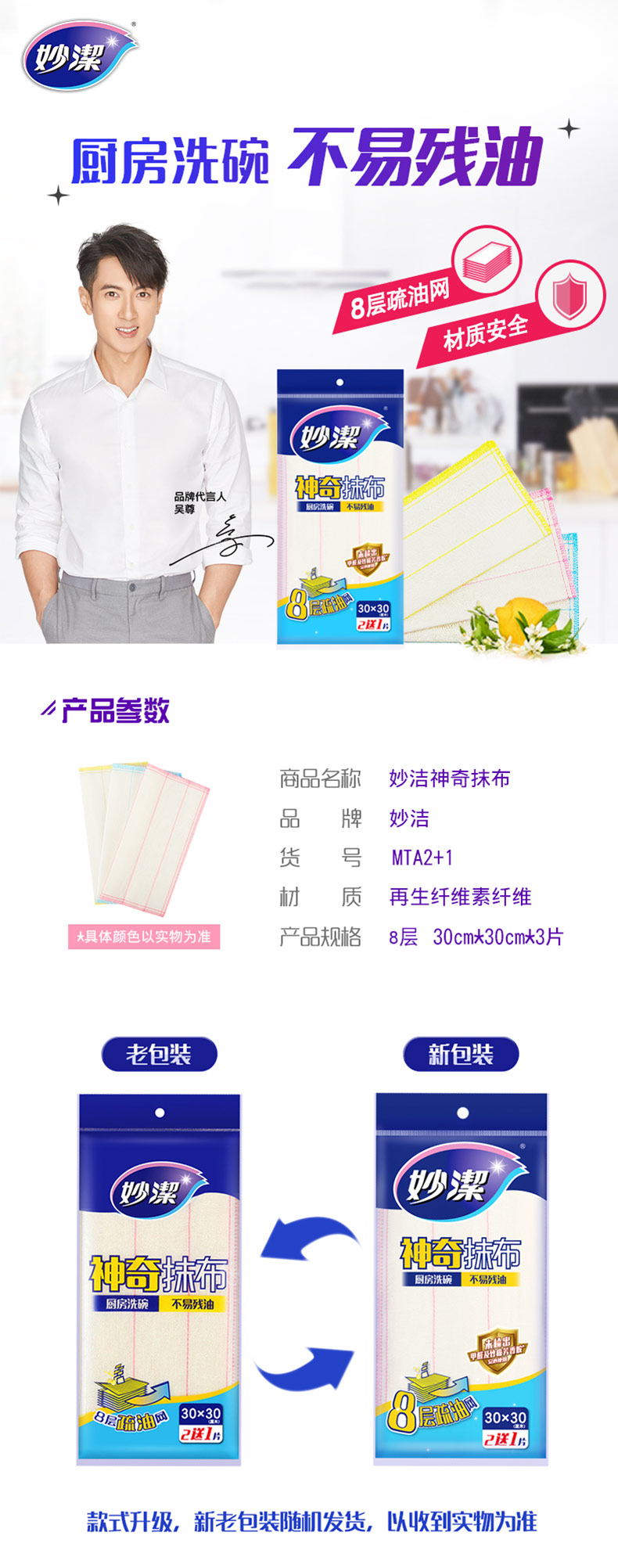 • 商品名称:妙洁(MIAOJIE) MTC3 绵柔抹布3片装天然植物纤维洗碗布30cm30cm