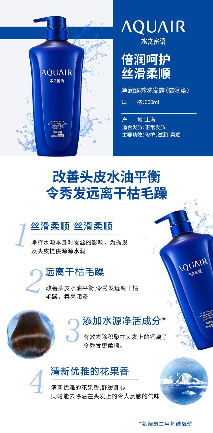 • 商品名称:水之密语(AQUAIR) 系列 (净润臻养洗发露(控油型) 200ml)