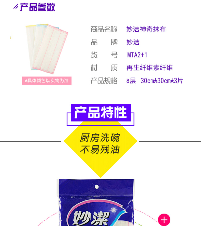 • 商品名称:妙洁(MIAOJIE) 妙洁八层疏油洗碗布3片装