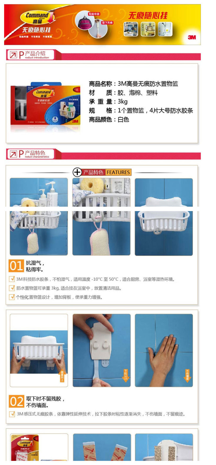 • 商品名称:3M XY003824485 高曼无痕防水置物篮