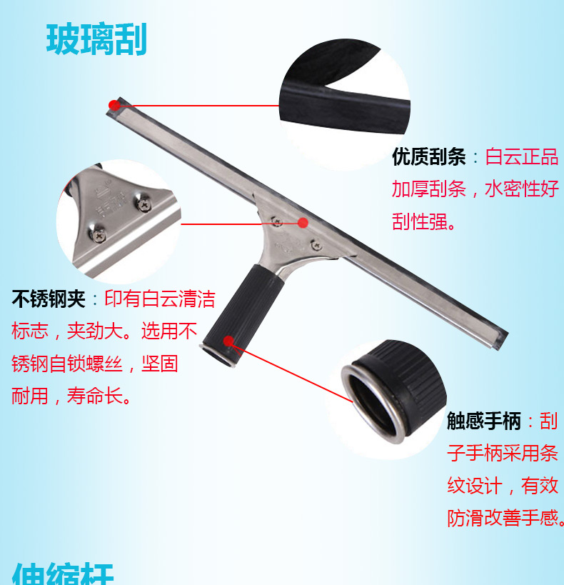 • 商品名称:白云 窗刮1.2m伸缩杆+45cm窗刮头