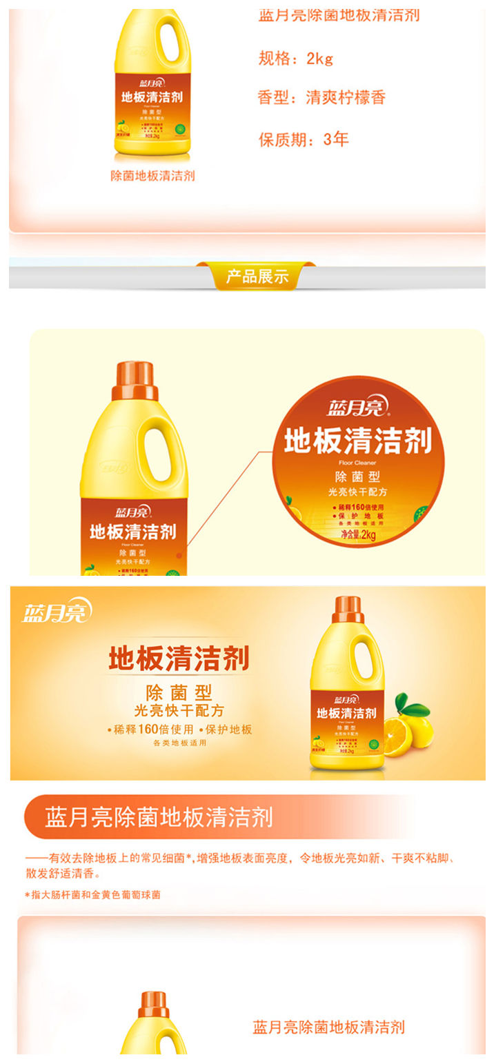 • 商品名称:蓝月亮 地板清洁剂 除菌 光亮地板净2kg/瓶