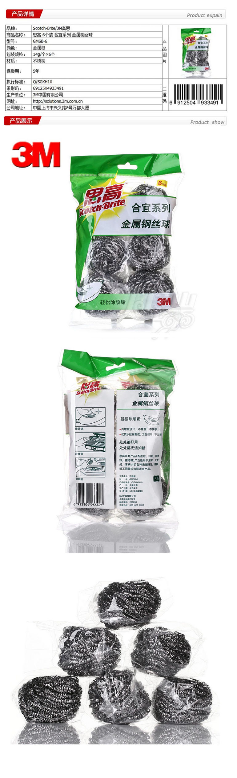 • 商品名称:3M 思高合宜系列金属钢丝球6个装