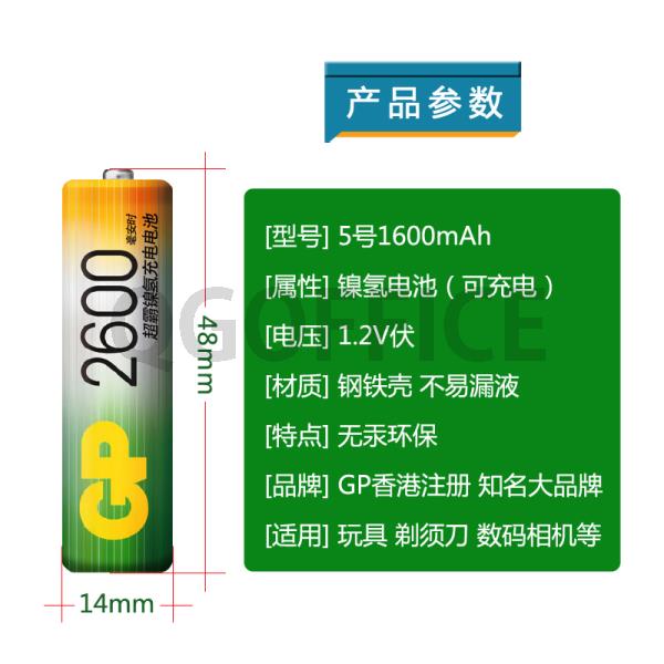 • 商品名称:超霸(GP) 五号2600毫安充电电池2粒/卡