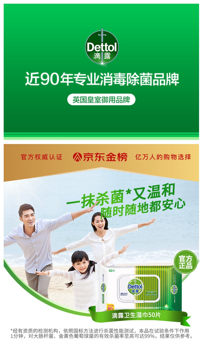 • 商品名称:滴露(Dettol) 卫生湿巾50片 杀菌99%