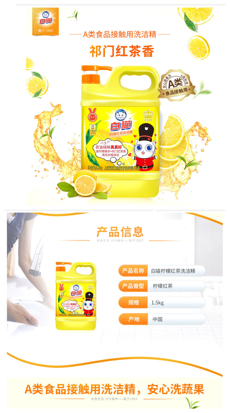 • 商品名称:白猫 柠檬红茶洗洁精(1.5千克)10桶/箱