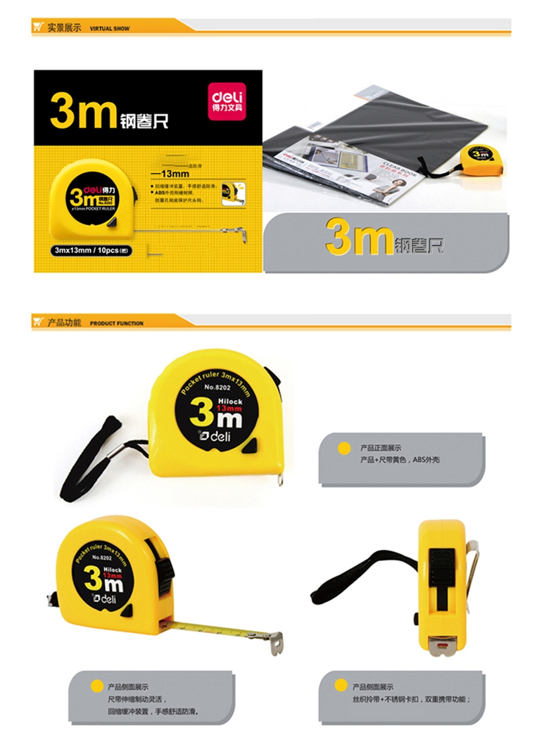 • 商品名称:得力(deli) 8202 钢卷尺3米