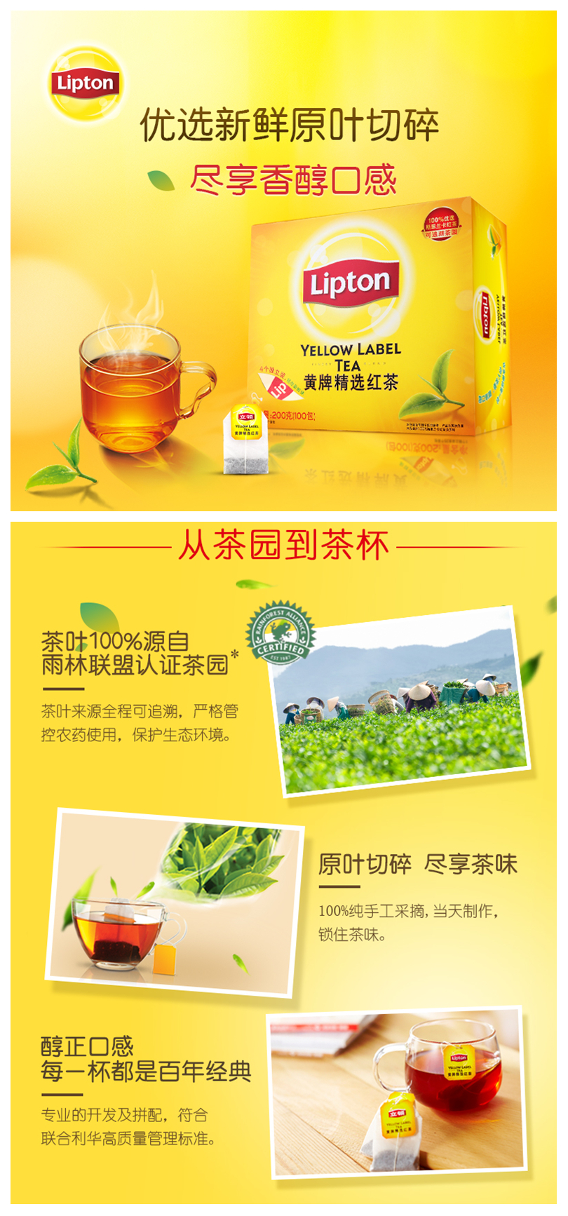 • 商品名称:立顿(Lipton) 茶叶黄牌精选红茶200G(2g*100袋) 12盒/箱
