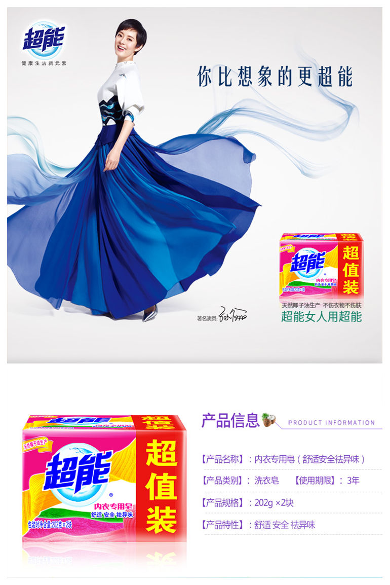 • 商品名称:超能 内衣专用皂/洗衣皂202g*2(超值套装)