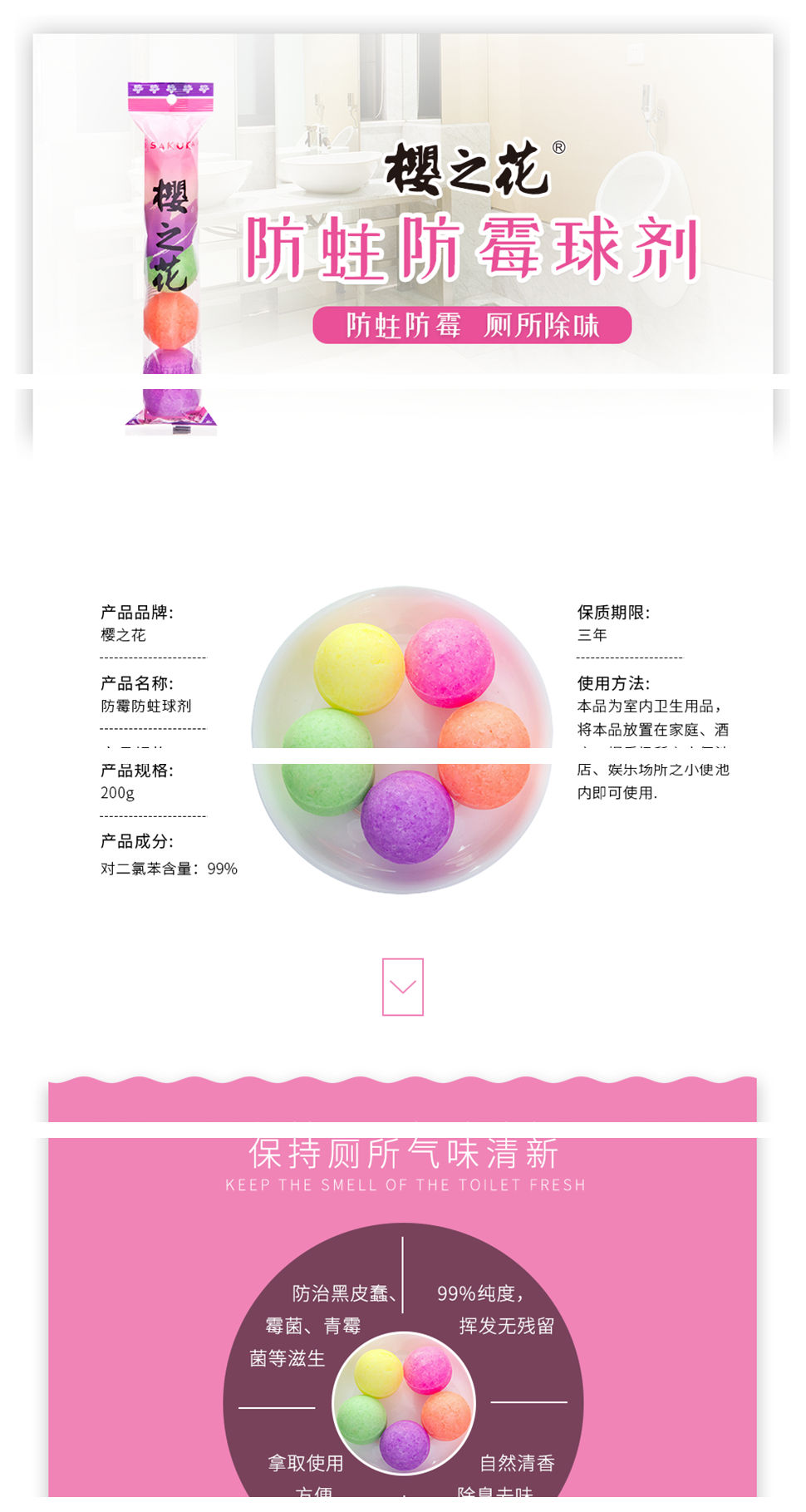• 商品名称:樱之花 除臭芳香球200g*5粒洁厕球