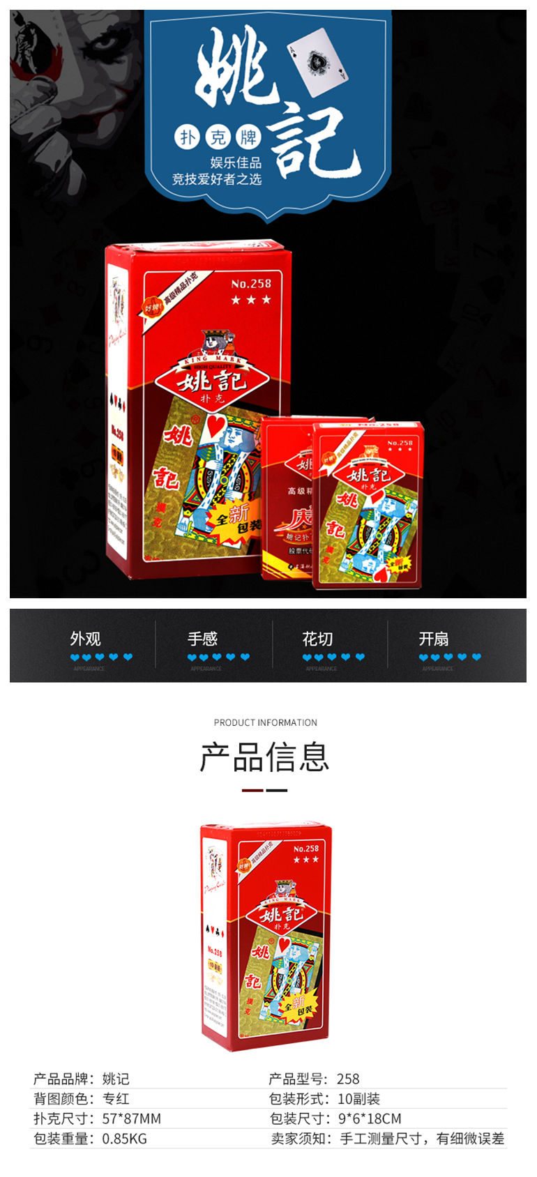 • 商品名称:姚记 258 扑克 12副/盒
