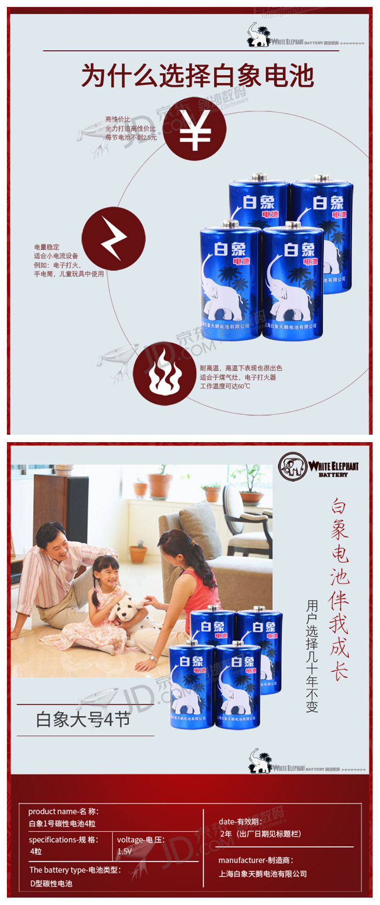 • 商品名称:白象 白象碳性干电池1号D型R20高功率