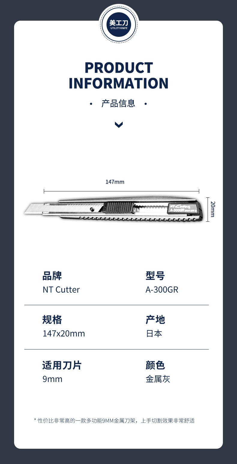 • 商品名称:NT A-300GRP 全金属手柄美工刀