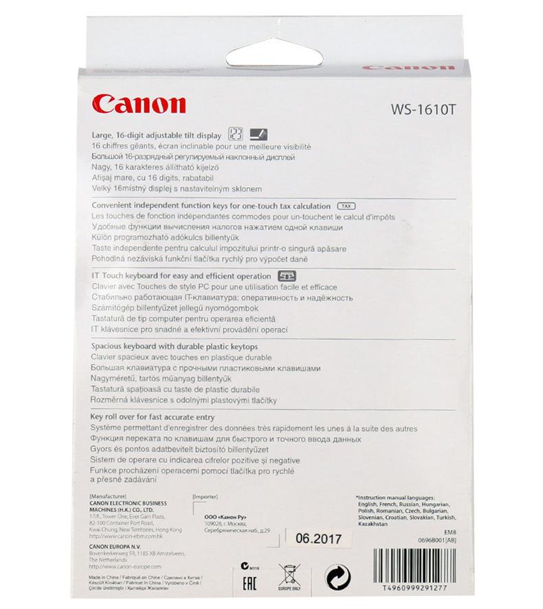 • 商品名称:佳能 WS-1610T 桌面型计算器